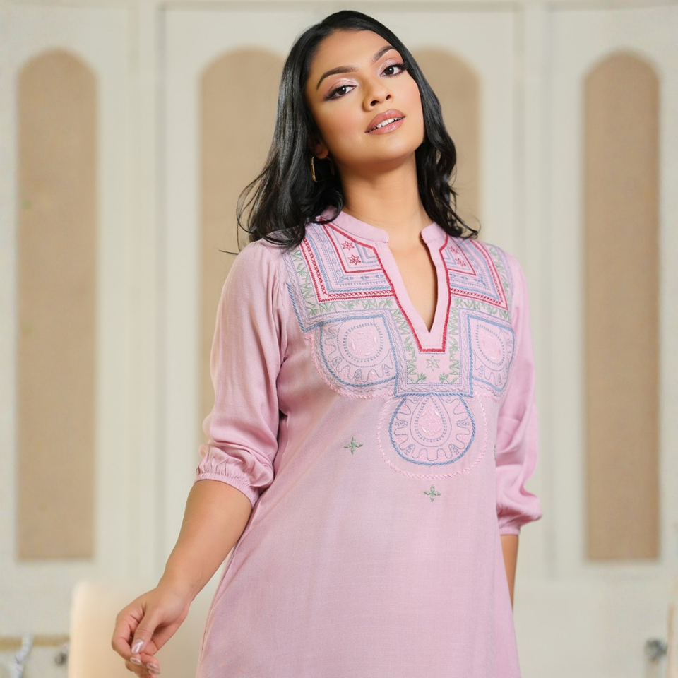 Vestido Corto de Alta Calidad con Mangas Abullonadas y Detalles de Bordado Clásico Versátil para Mujer