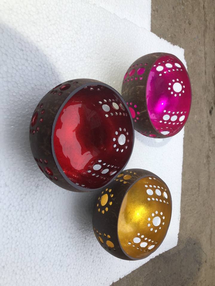 Cuenco de coco lacado hecho a mano de Vietnam, cuenco con incrustaciones de conchas marinas naturales, venta al por mayor de Vietnam
