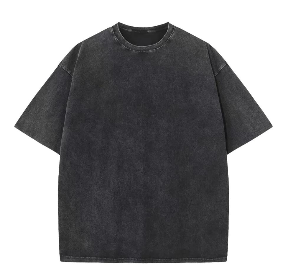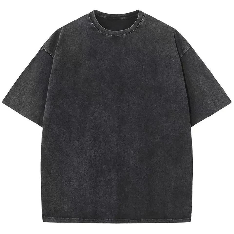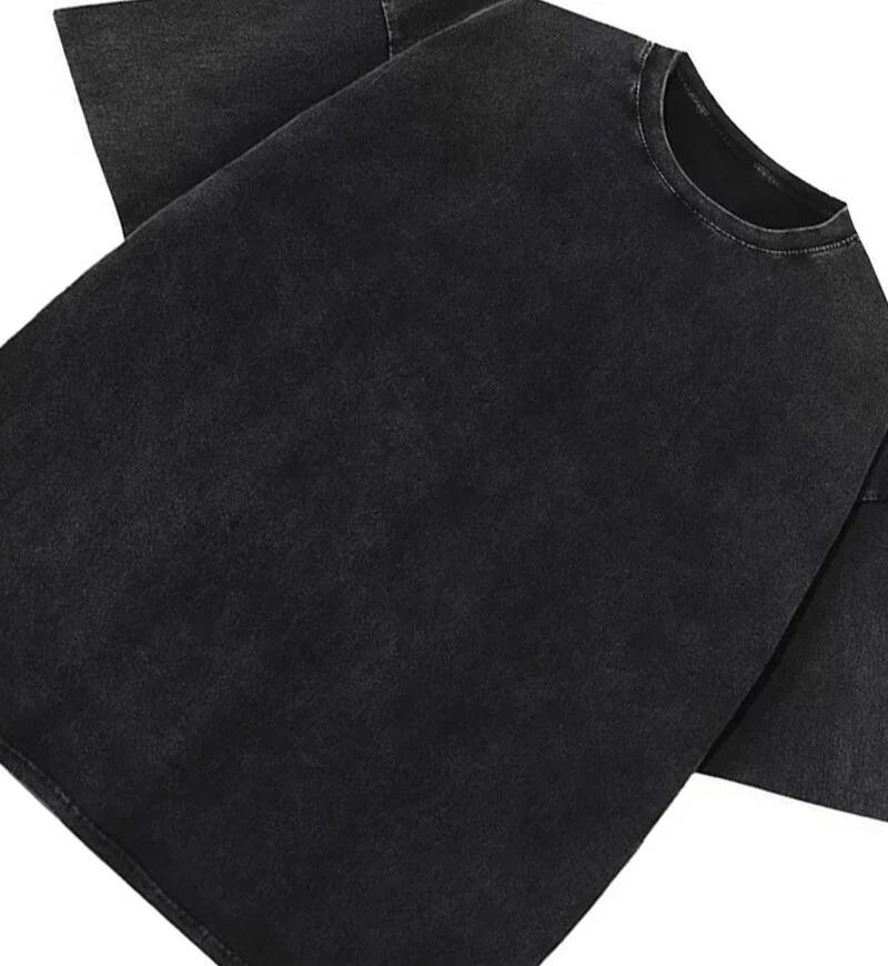 Camiseta Negra de Alta Calidad, Estilo Vintage, Lavada al Ácido, de Hombros Caídos, Estilo Urbano, Gruesa