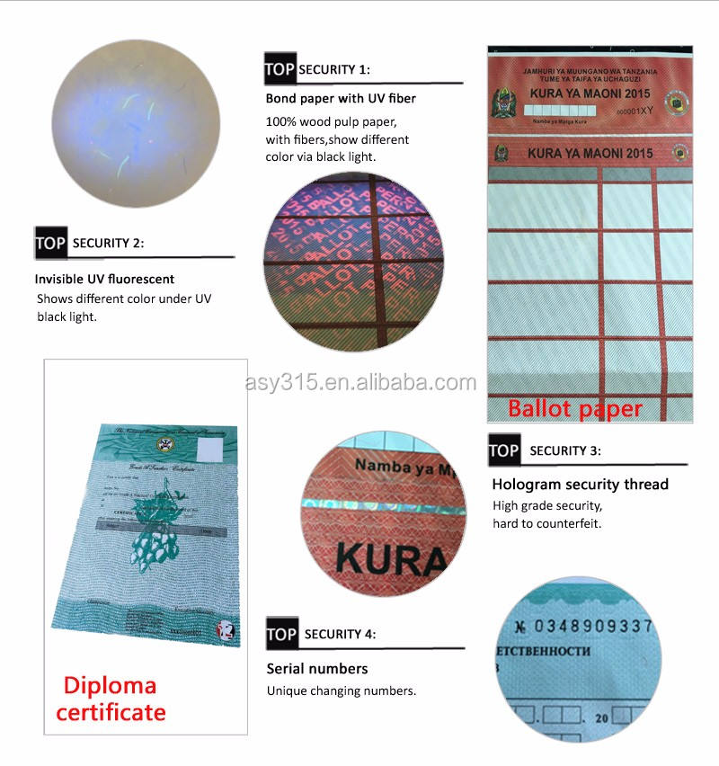 Logotipo de boleta de votación de alta calidad Impresión de seguridad personalizada Papel de votación antifalsificación