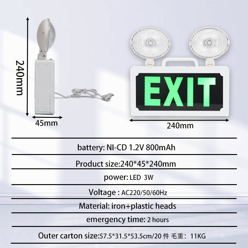 Nombre del producto:Luz de señal de salida de emergencia LED recargable de 3W con doble cabezal tipo fuego