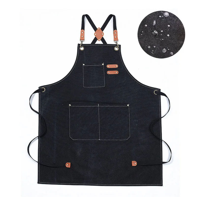 Delantales de Chef profesional lavables de alta calidad, delantal de cocina ajustable con múltiples bolsillos de lona y cuero personalizado