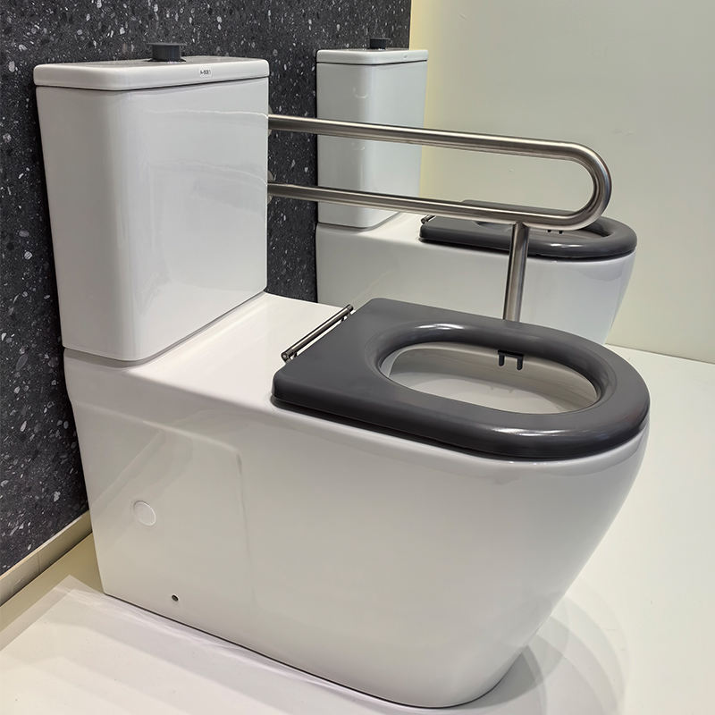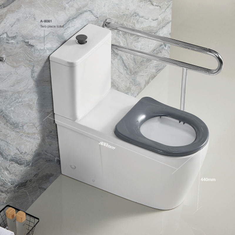 Inodoro de desactivación sin montura de artículos sanitarios CE de marca de agua de alta calidad 80Omm de largo 440mm de alto inodoro de dos piezas para discapacitados