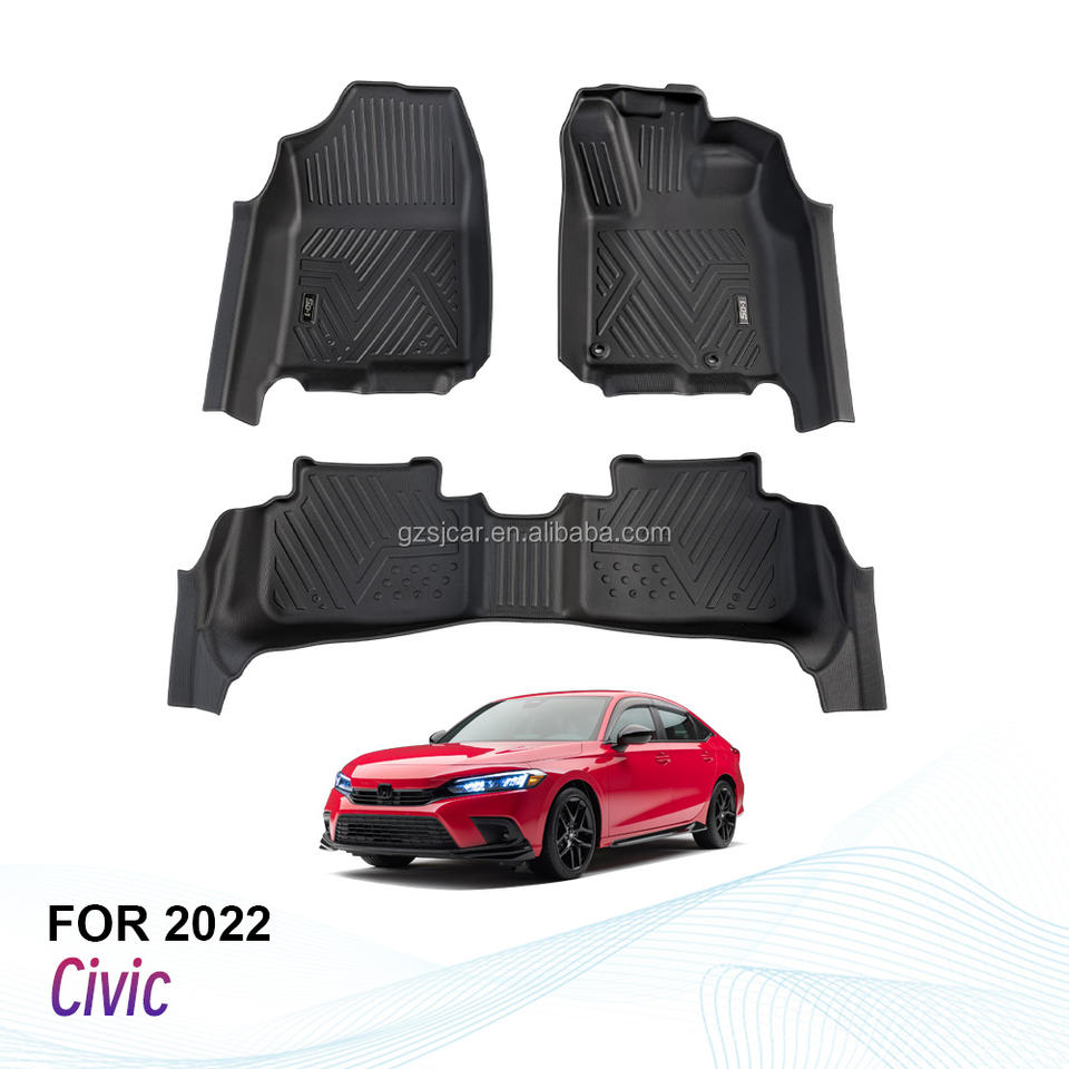 Alfombrillas de Coche TPE Antideslizantes e Impermeables de Alta Calidad, para Conducción con Volante a la Derecha, 3 Piezas, Color Negro, Alfombrillas 5D Profundas para Honda Civic 2022