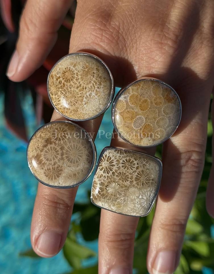 Piedra:Anillo de Coral Fósil con Piedras Preciosas