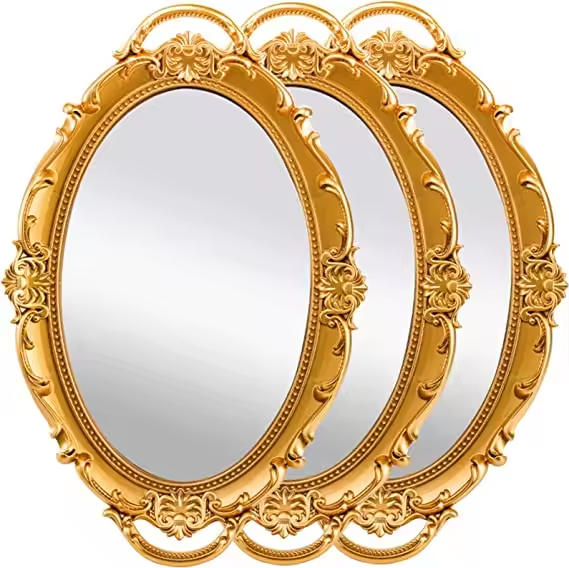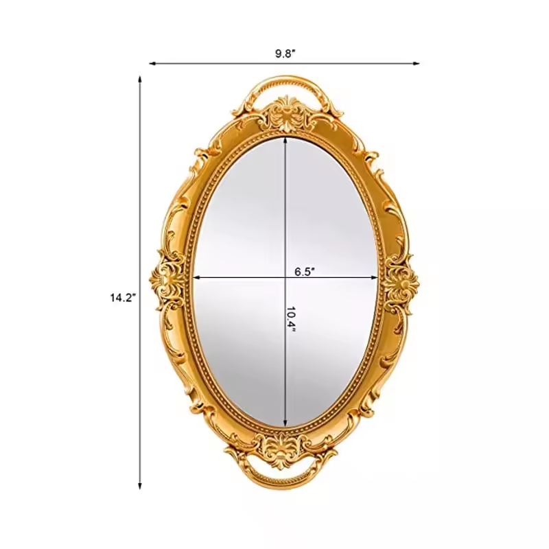 Bandeja de tocador con espejo dorado redondo para decoración del hogar de boda de alta calidad, bandeja para servir para decoración de habitación, organizador de maquillaje antiguo ovalado
