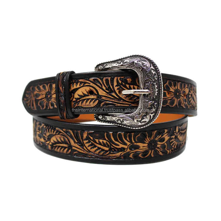 Cinturón occidental de alta calidad, cuero de vaca grabado a mano con hebilla de aleación de zinc de colores, longitud personalizada importada de Argentina