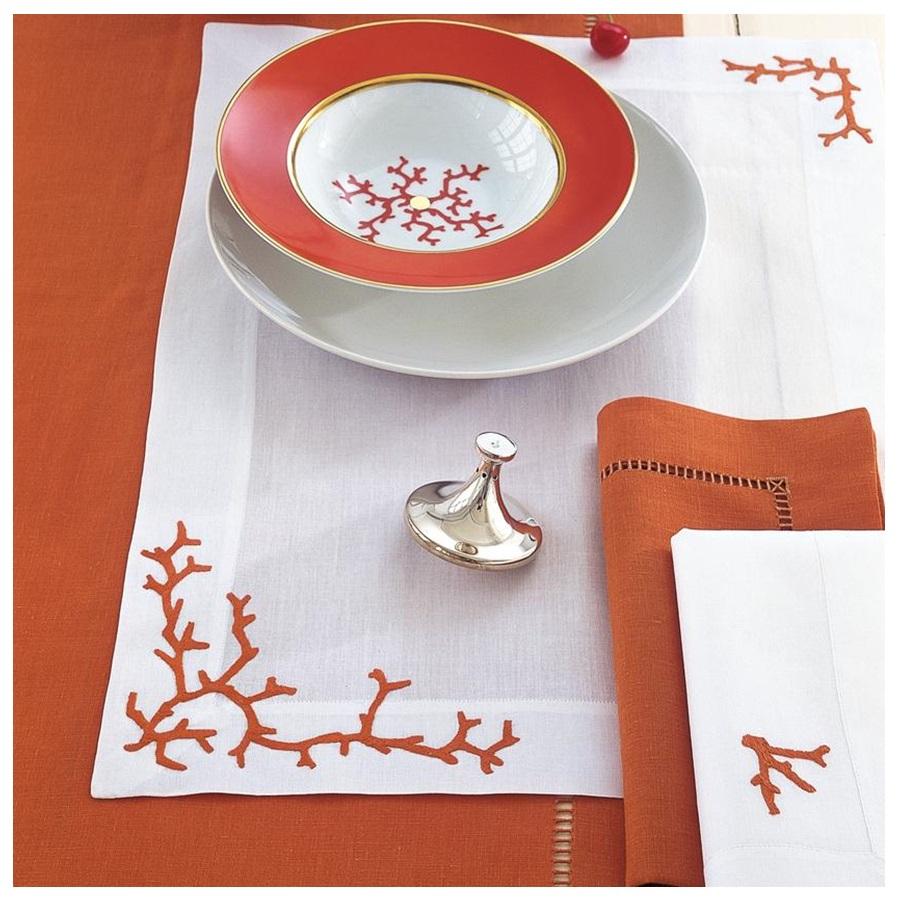 Bandejas de algodón blanco de alta calidad bordadas DISEÑO DE Coral rojo juego de servilletas luz Vintage hogar restaurante Decoración de mesa