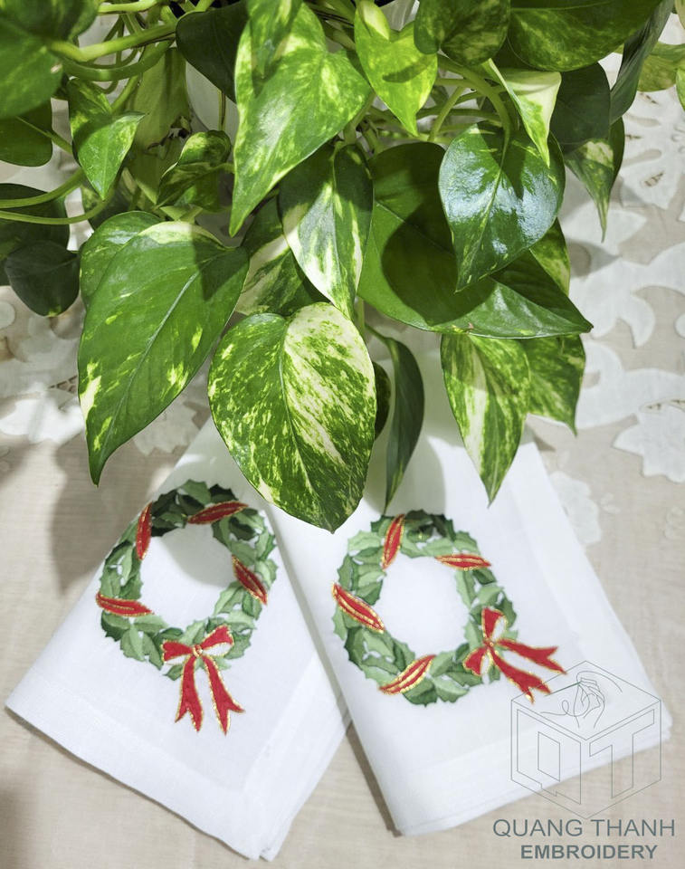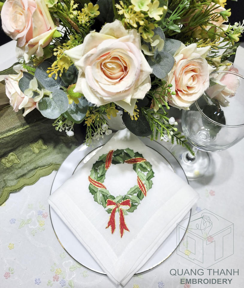 Servilleta de mesa de poliéster y lino blanco de alta calidad con corona bordada personalizada, servilleta de CENA DE Navidad para eventos de Hotel en casa