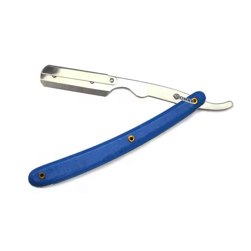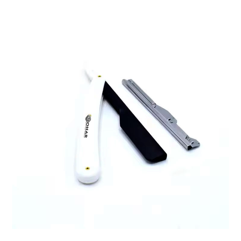 Cuchilla de mango de plástico blanco de alta calidad, maquinilla de afeitar recta de peluquero de acero inoxidable, maquinilla de afeitar de borde recto de peluquero personalizada
