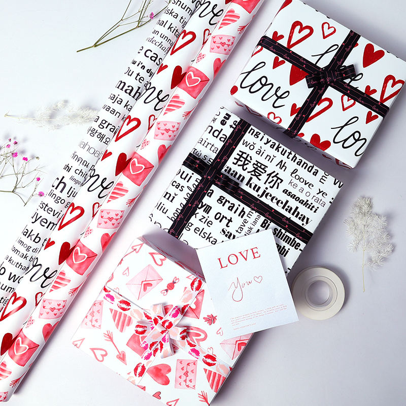 Alta calidad, venta al por mayor, 80g, Día de San Valentín y amor, papel tisú artístico, 43*300cm, regalo, embalaje personalizado de lujo, rollo de papel de regalo