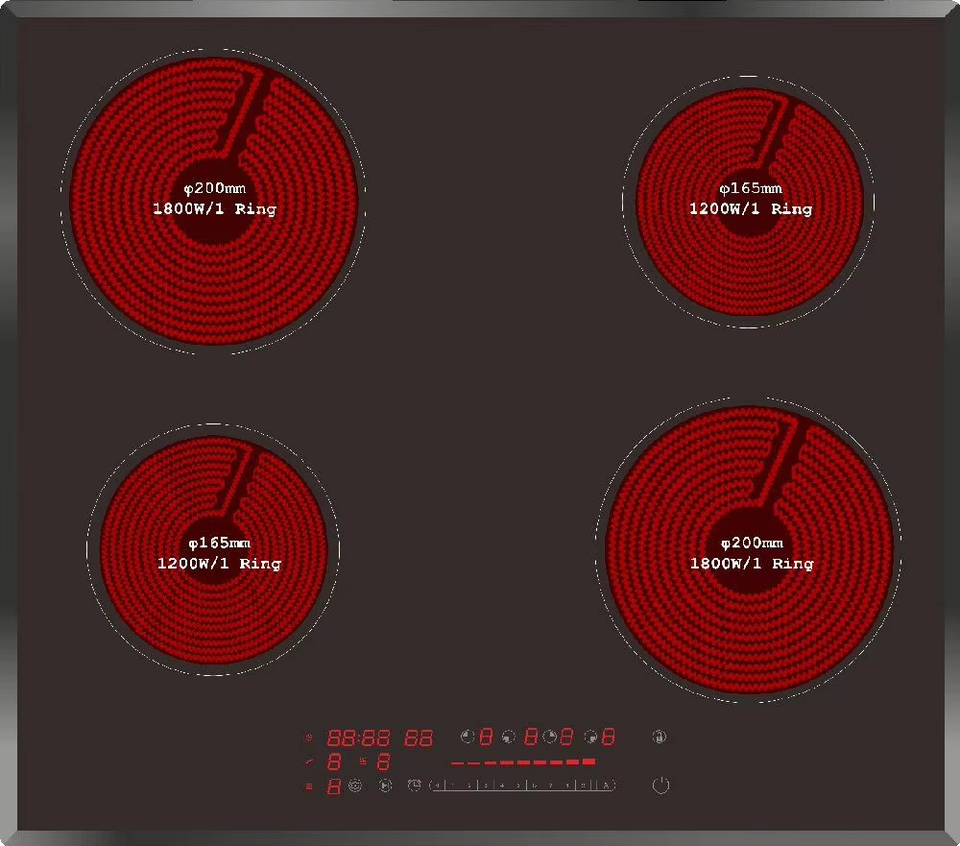 Nombre del producto:Placa de Cocción Infrarroja Empotrable de 4 Quemadores Radiante Inteligente