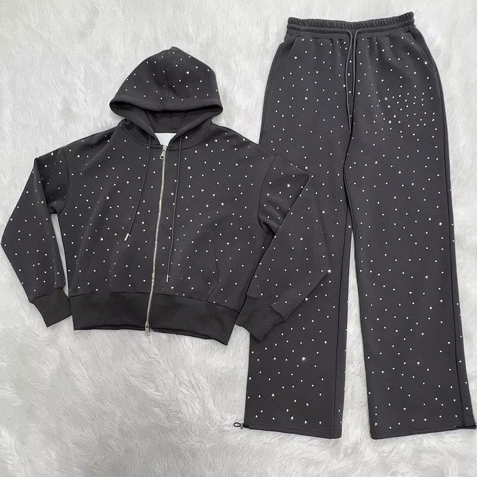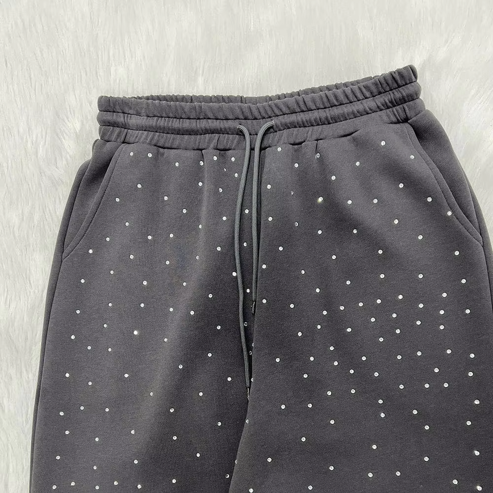 Chándales Deportivos Casuales Personalizados de Alta Calidad al por Mayor con Pedrería para Hombre, Chándales Ajustados con Pedrería Desgastada