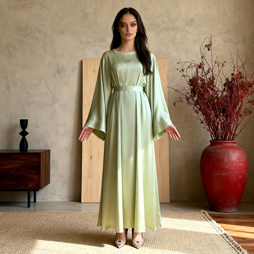 Abaya de Poliéster Satinado Personalizada al por Mayor de Alta Calidad para Mujeres Musulmanas, Vestido Elegante para Fiestas y Ocasiones