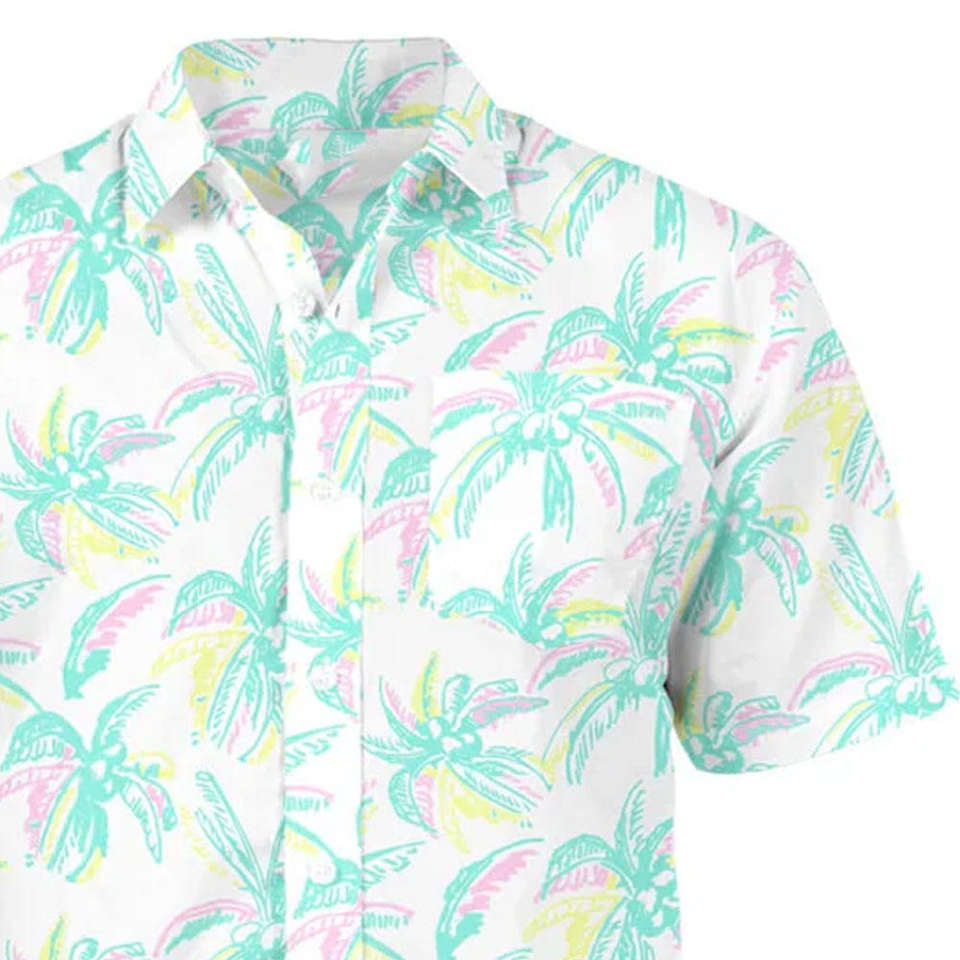Camisa Hawaiana de poliéster de alta calidad al por mayor, impresión personalizada de vacaciones, manga corta, camisas casuales de verano para hombres, camisas de playa