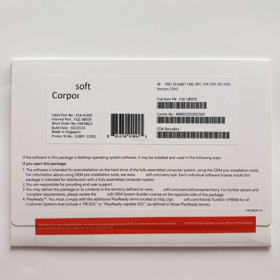 DVD OEM de Windows 10 Pro