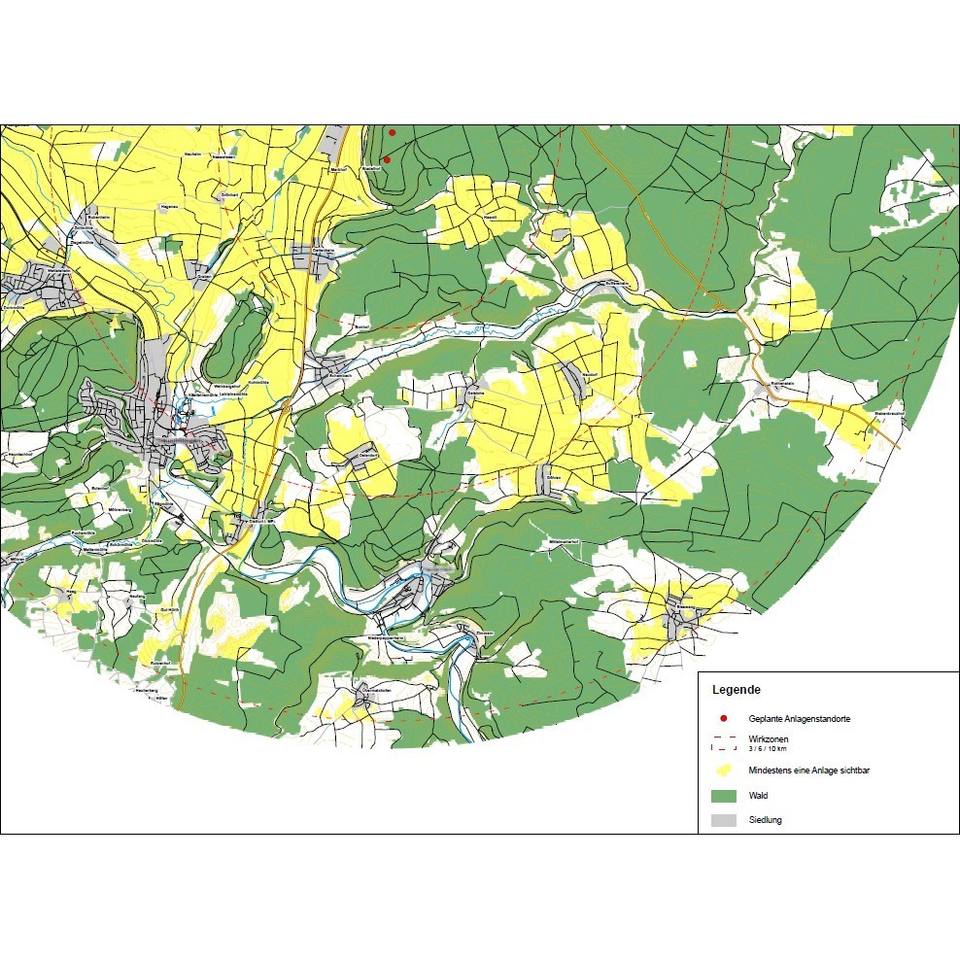 Cálculos de visibilidad y visualizaciones para turbinas eólicas/sistemas fotovoltaicos