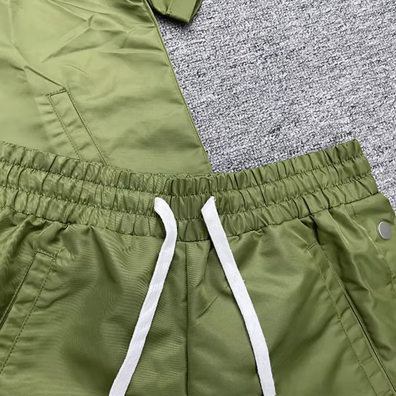 Diseño a prueba de viento de alta calidad de talla grande elegante botón lateral conjunto corto personalizado ligero para hombre conjunto de pantalones cortos cortavientos de nailon
