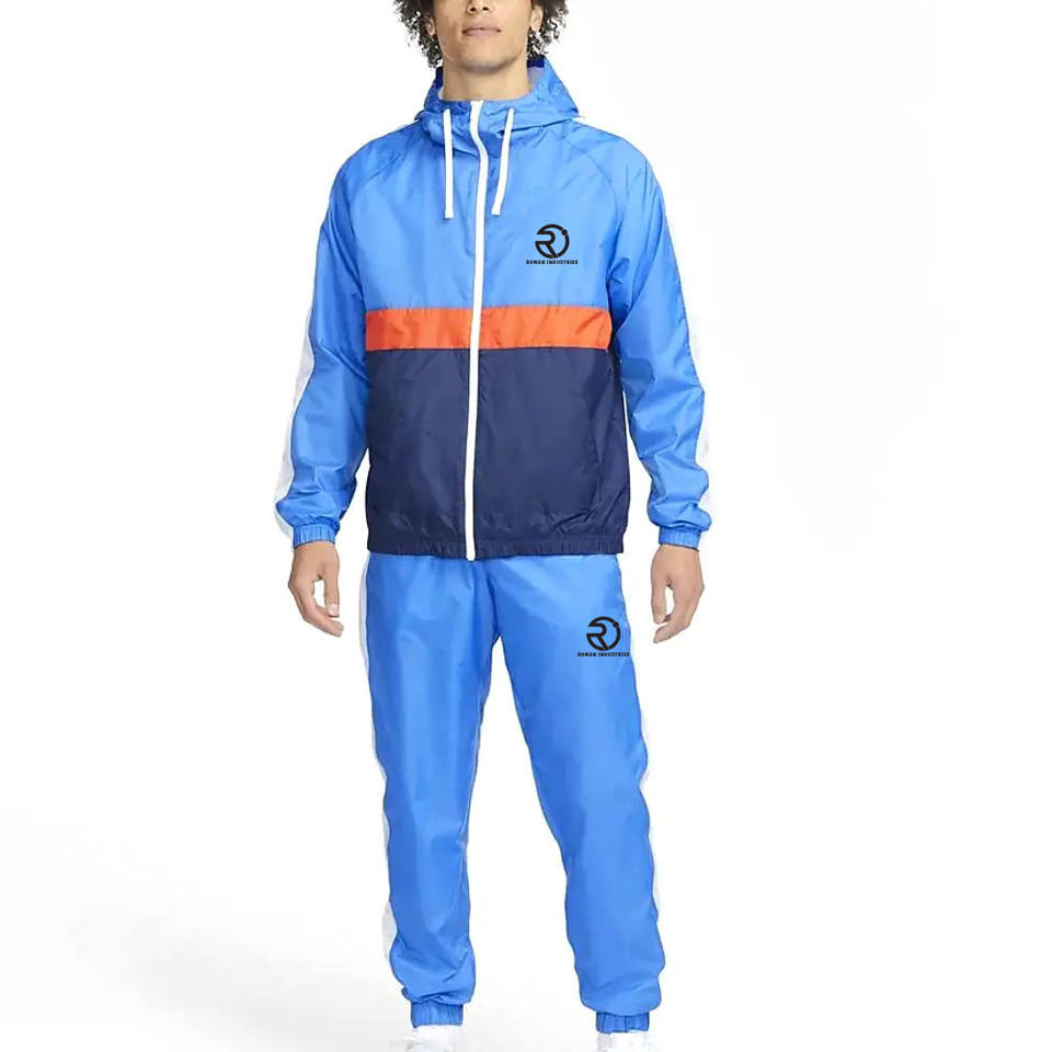 Chándales cortavientos sólidos con capucha de invierno de alta calidad para hombres con logotipo personalizado de dos piezas de poliéster/nailon