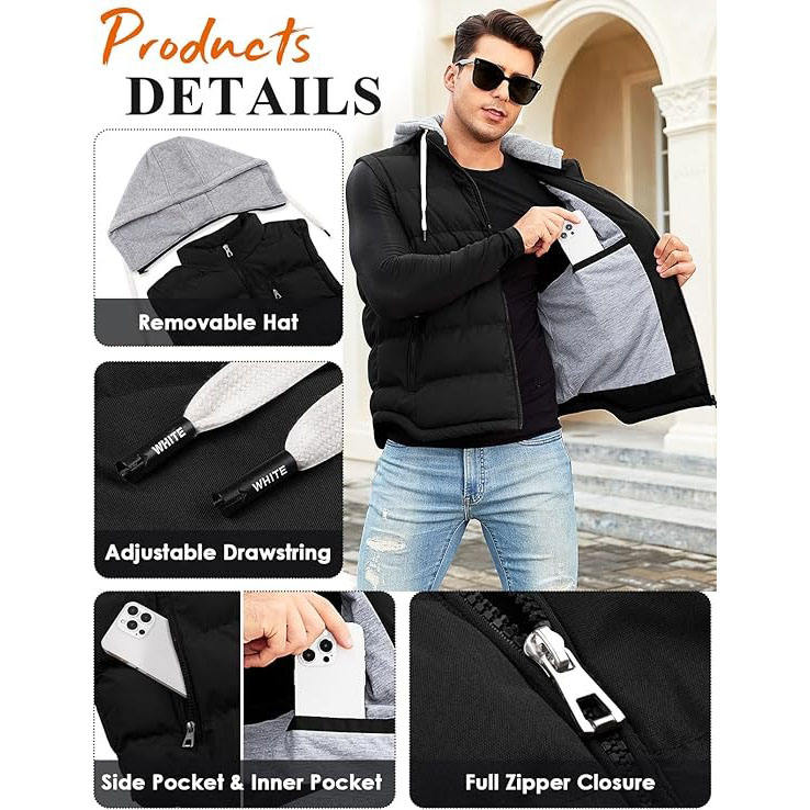 Chaqueta acolchada de invierno de alta calidad, capucha con soporte, cierre de cremallera, logotipo frontal, cuerdas de dibujo, transpirable, de secado rápido, esponjoso, logotipo personalizado