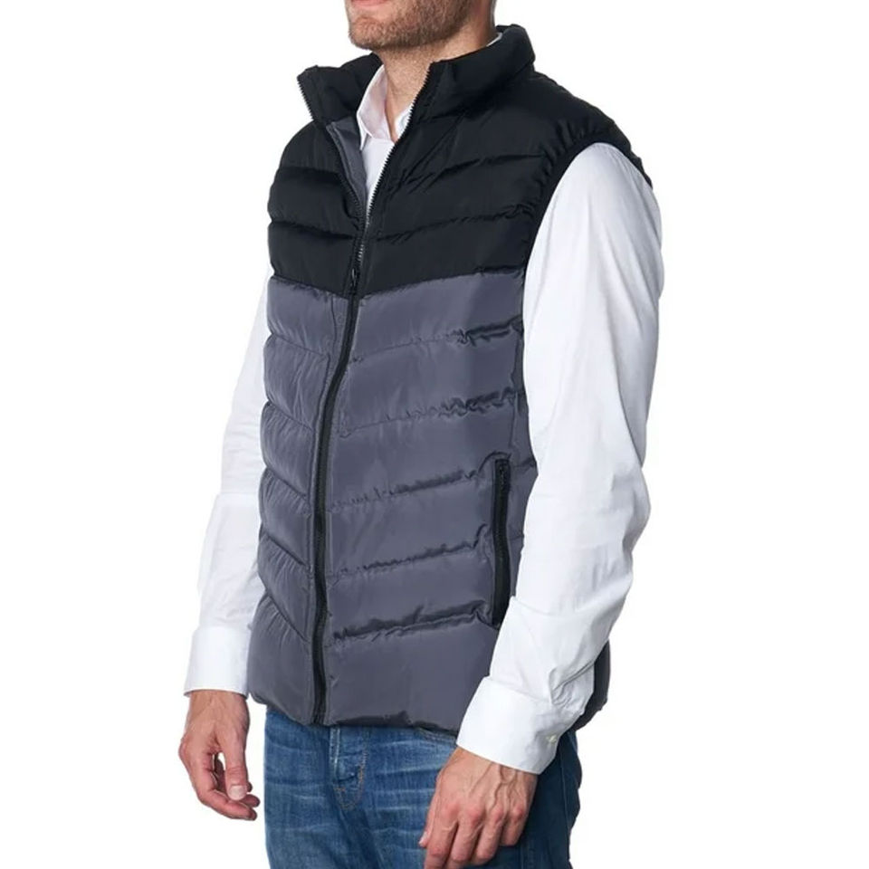 Chaleco acolchado de invierno de alta calidad con cuello levantado, cremallera completa, logotipo personalizado, chaqueta cálida con capucha a prueba de viento para hombres, chaquetas para hombres