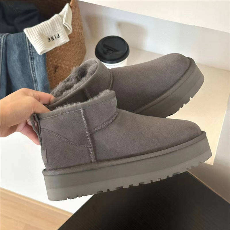 Botas de Invierno de Alta Calidad para Mujer, Estilo UGG, de Lana y Cuero, con Forro de Piel, Suela Gruesa de Goma, Plataforma, Punta Redonda, Cálidas