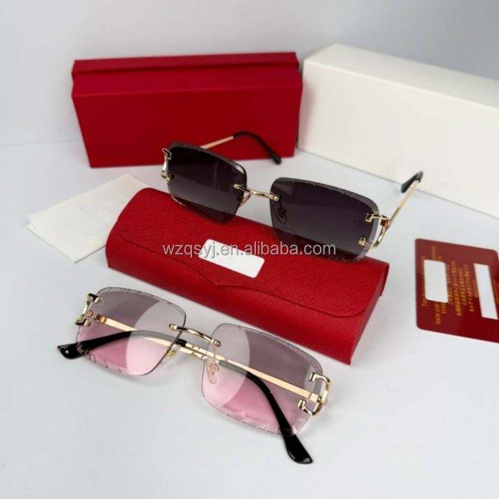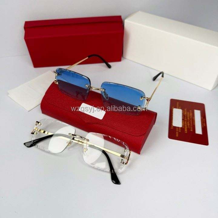 Gafas de Sol Cuadradas Sin Montura de Diseño Azul de Alta Calidad con Caja, para Hombre y Mujer, Corte de Diamante, Protección UV400 % UV de Lujo