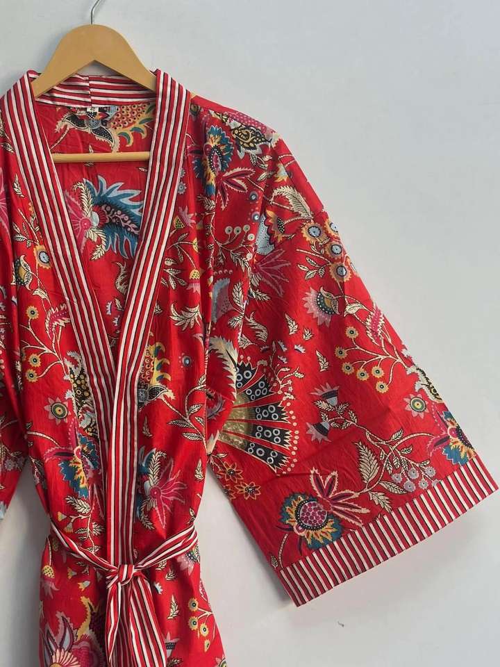 Kimono Boho de Alta Calidad para Mujer, Algodón Orgánico, Cuello en V, Manga Larga, Secado Rápido, Hermoso Diseño con Estampado Floral, Primavera/Verano