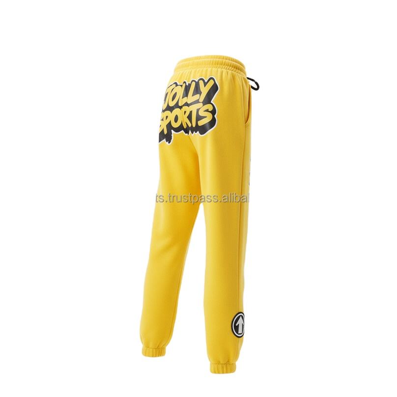 Pantalón Jogger de alta calidad para mujer, tela de lana de algodón, cintura elástica suave, estampado de logotipo personalizado, ropa informal amarilla a la moda