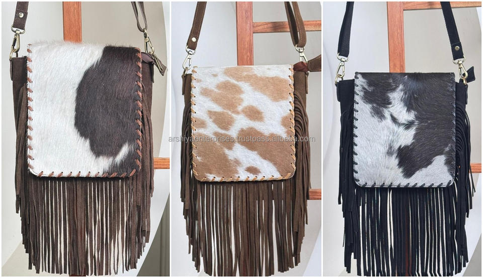 Nombre del producto:Bolso bandolera con flecos de cuero de ante de piel de vaca