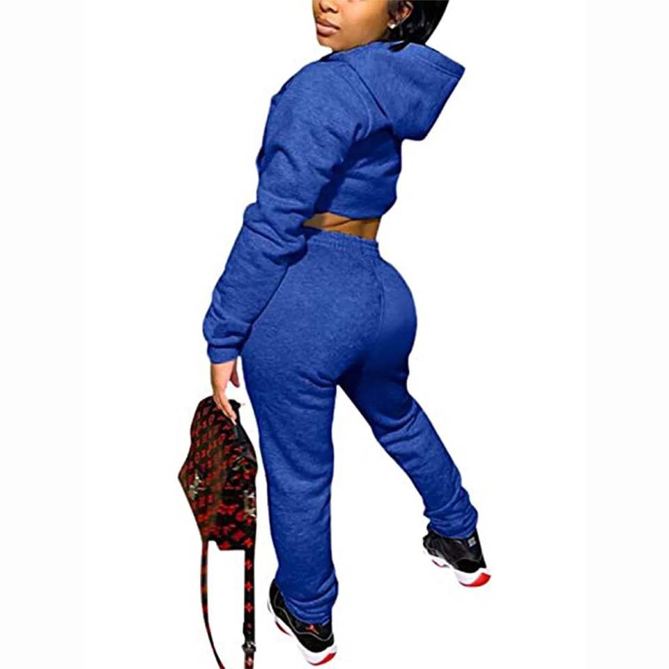 Chándales de alta calidad para mujer, Sudadera con capucha recortada en Color azul, ropa informal con Logo personalizado
