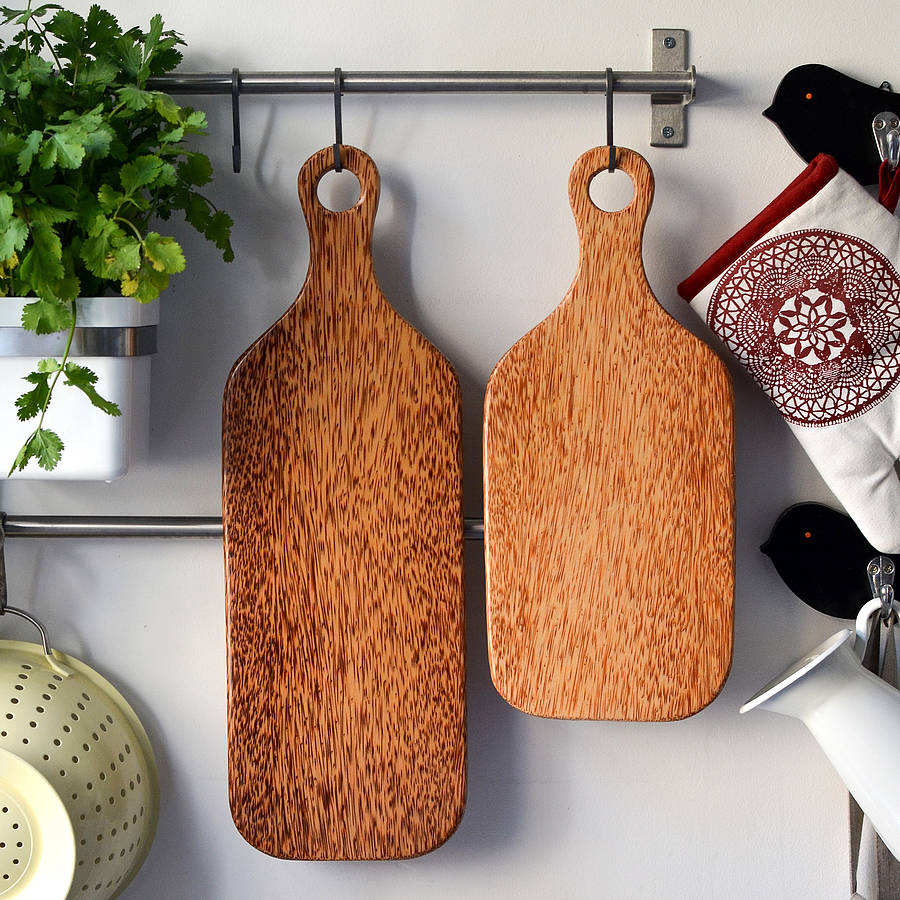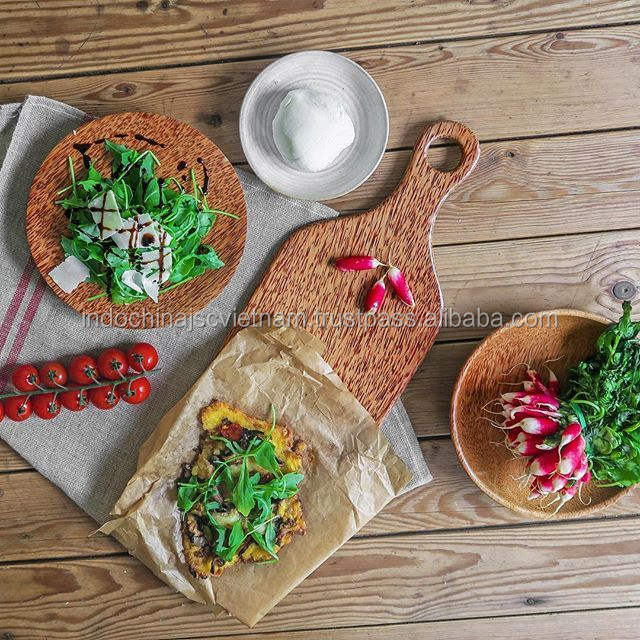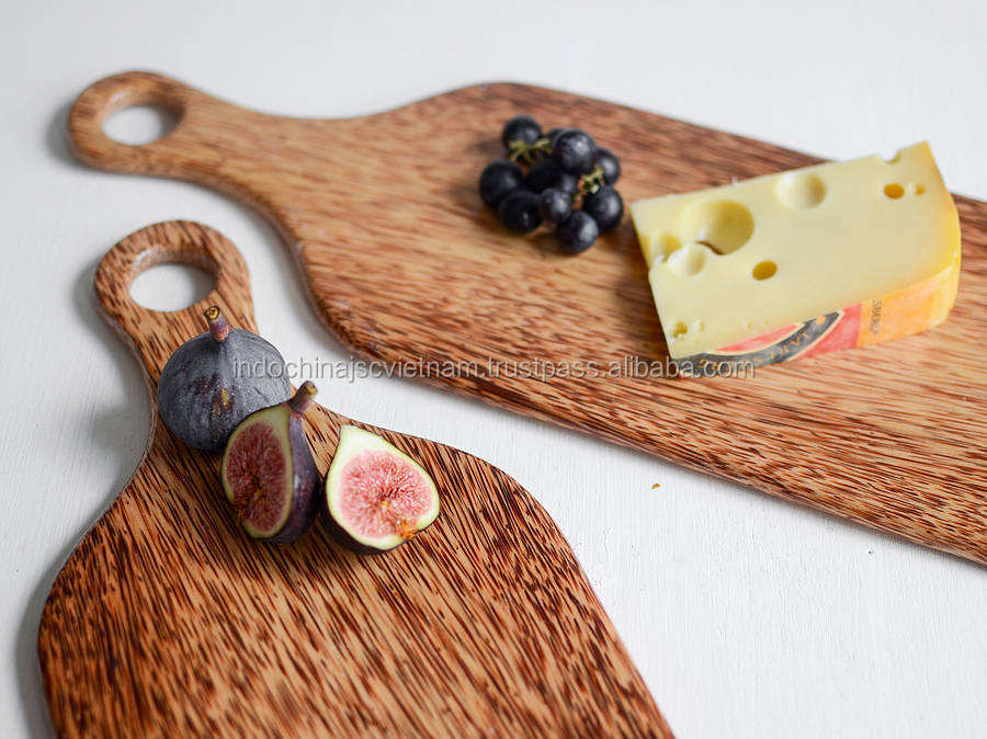 Tabla de cortar madera de alta calidad, tablero de servicio hecho de mesa de comedor de coco, accesorios para decoración de cocina, venta al por mayor