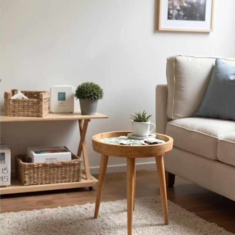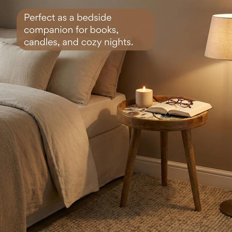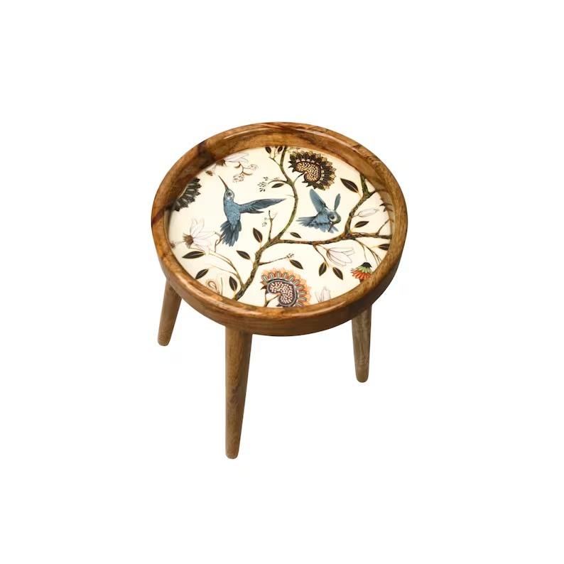 Taburete de Madera de Alta Calidad con Resina Epoxi Ecológica, Diseño Compacto y Duradero para Decoración del Hogar, Hecho en India