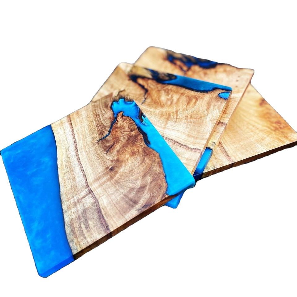 Posavasos de madera y resina azul de alta calidad, posavasos de nogal, manteles de corcho para mesa de casa y posavasos de corcho al por mayor para uso de bebidas