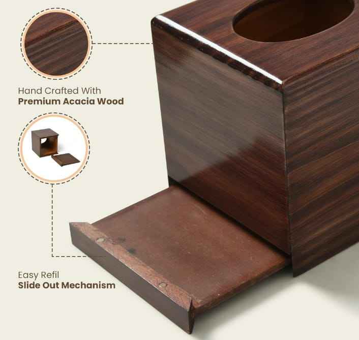 Dispensador de Caja de Pañuelos de Madera Hecho a Mano de Alta Calidad con Acabado Liso, Ecológico y Duradero para Uso en Oficina y Hogar