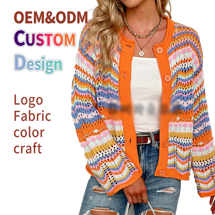 Cárdigan de Lana de Alta Calidad con Rayas de Arcoíris, Suave y Ligero, Personalizado para Mujer