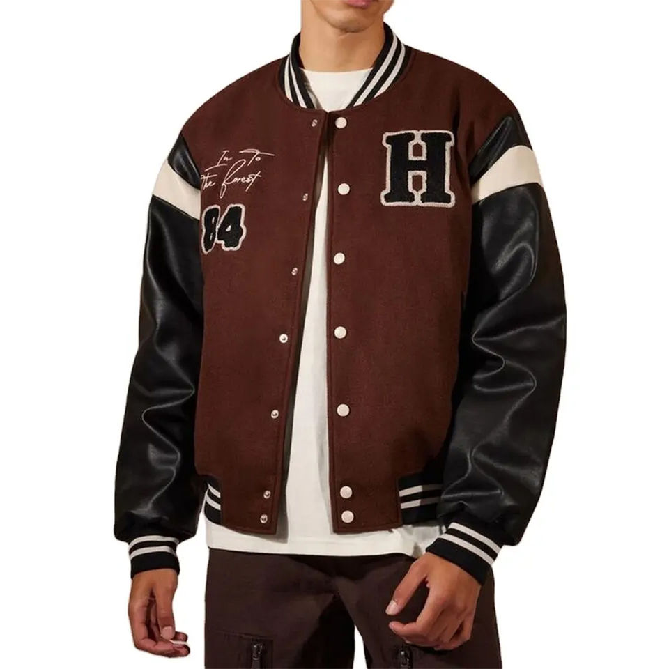 Chaqueta Universitaria de Lana de Alta Calidad, Bordado Personalizado, Mangas de Cuero a la Moda, Secado Rápido, Ropa Casual