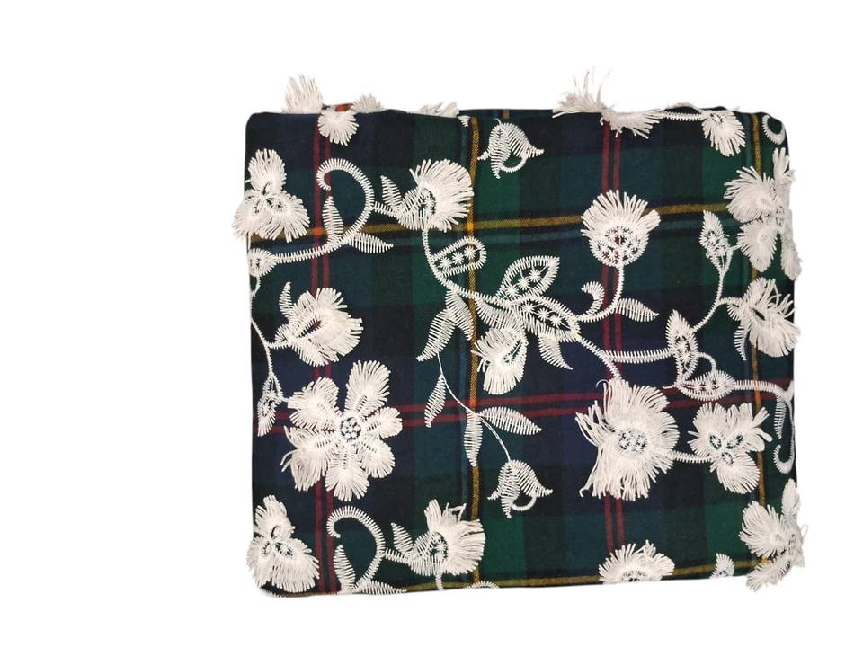 Tipo:Tela de algodón a cuadros verde oscuro con apliques florales 3D blancos