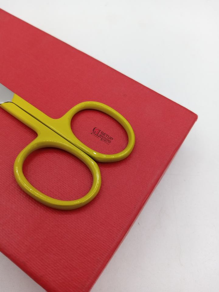 Tijeras de Cejas de Acero Inoxidable con Punta Plateada, Hoja Recta Pequeña, Recubrimiento en Polvo Amarillo de Alta Calidad, Logotipo Personalizado, Instrumento de Belleza