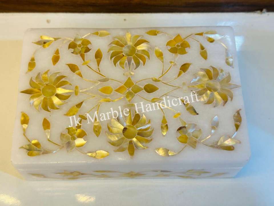 Caja de collar con incrustaciones de mármol rectangular amarillo de alta calidad, el mejor precio al por mayor para almacenamiento de joyas, artículo de regalo hecho a mano indio