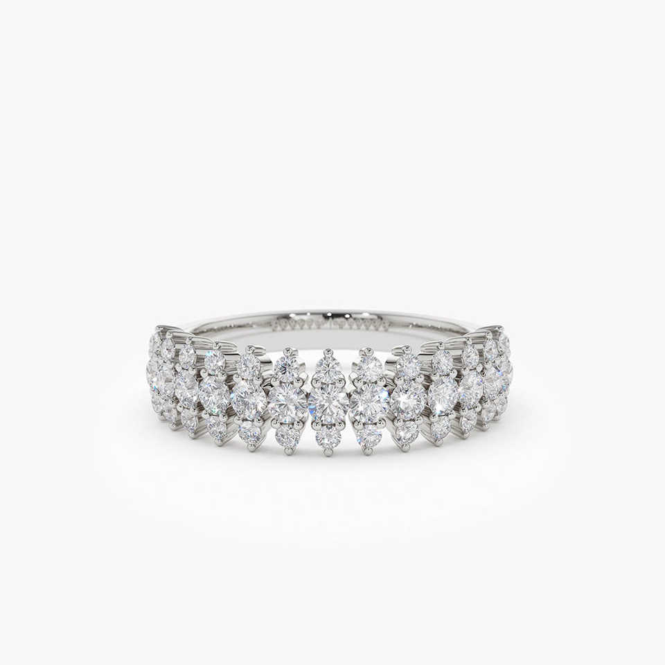 Anillo fino de diamante blanco de oro sólido amarillo de alta calidad, anillo de punta de diamante redondo de media eternidad de 14K, joyería de diamante Real elegante