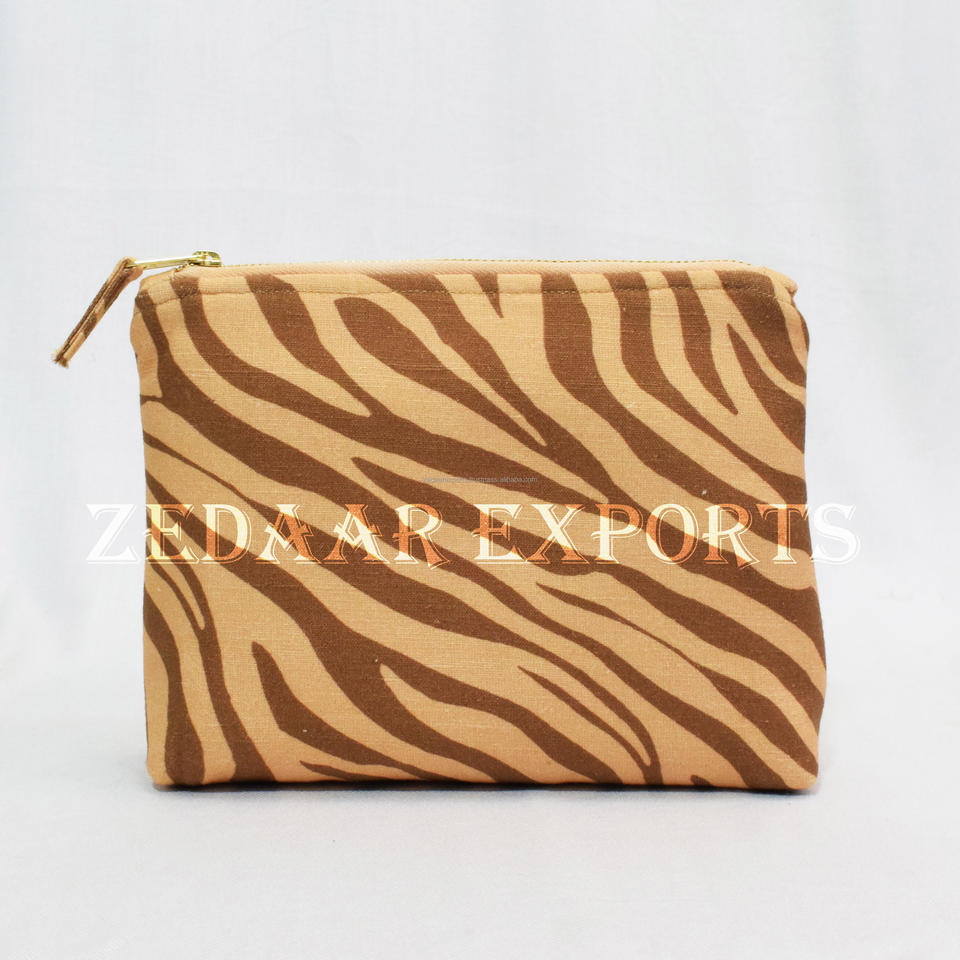 High Quality Zipper Closure Linen Cosmetic Handbags