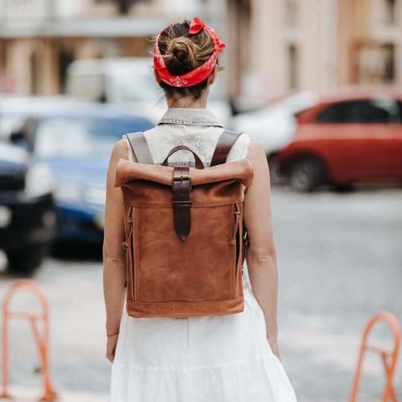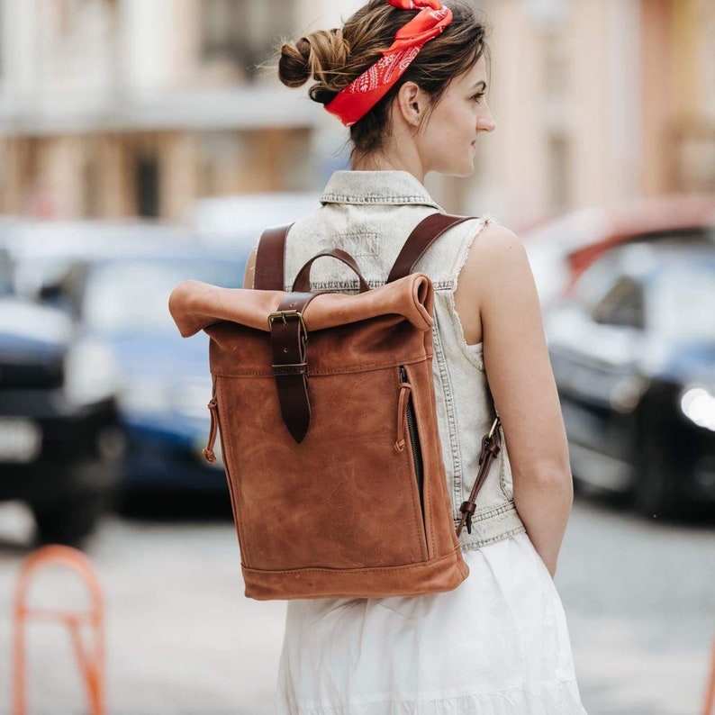 Mochila de cuero Roll Top