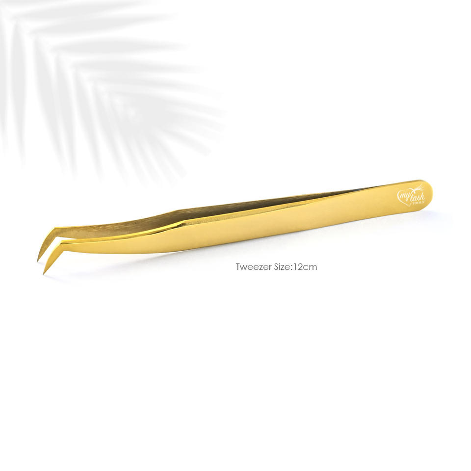Nombre del producto:Alta calidad Lash extensión volumen pinzas punta 12cm oro