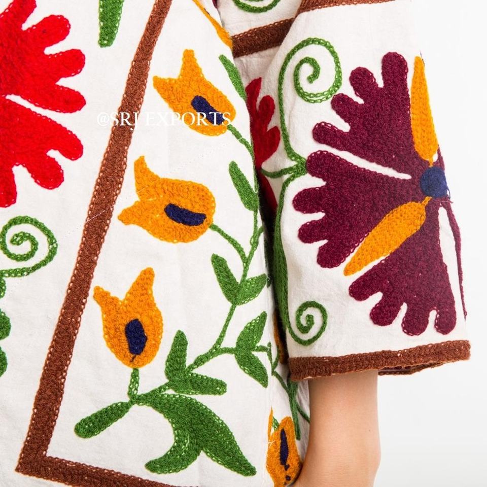 Alta calidad tamaño bordado de estilo Folk buena suerte chaqueta de diseño Suzani Kimono Uzbekistán plus tamaño Unisex abrigo