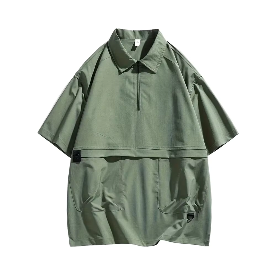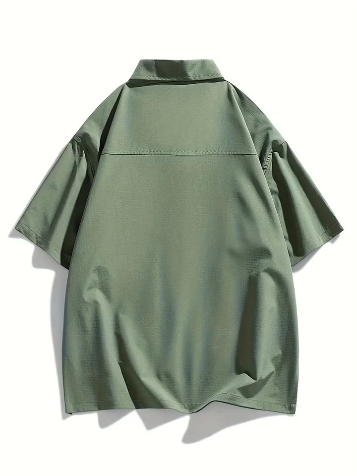 Estampado transpirable de secado rápido para hombres de estilo americano para bolsillos de camisa Media cremallera Color sólido Tejido elástico ligero Casual