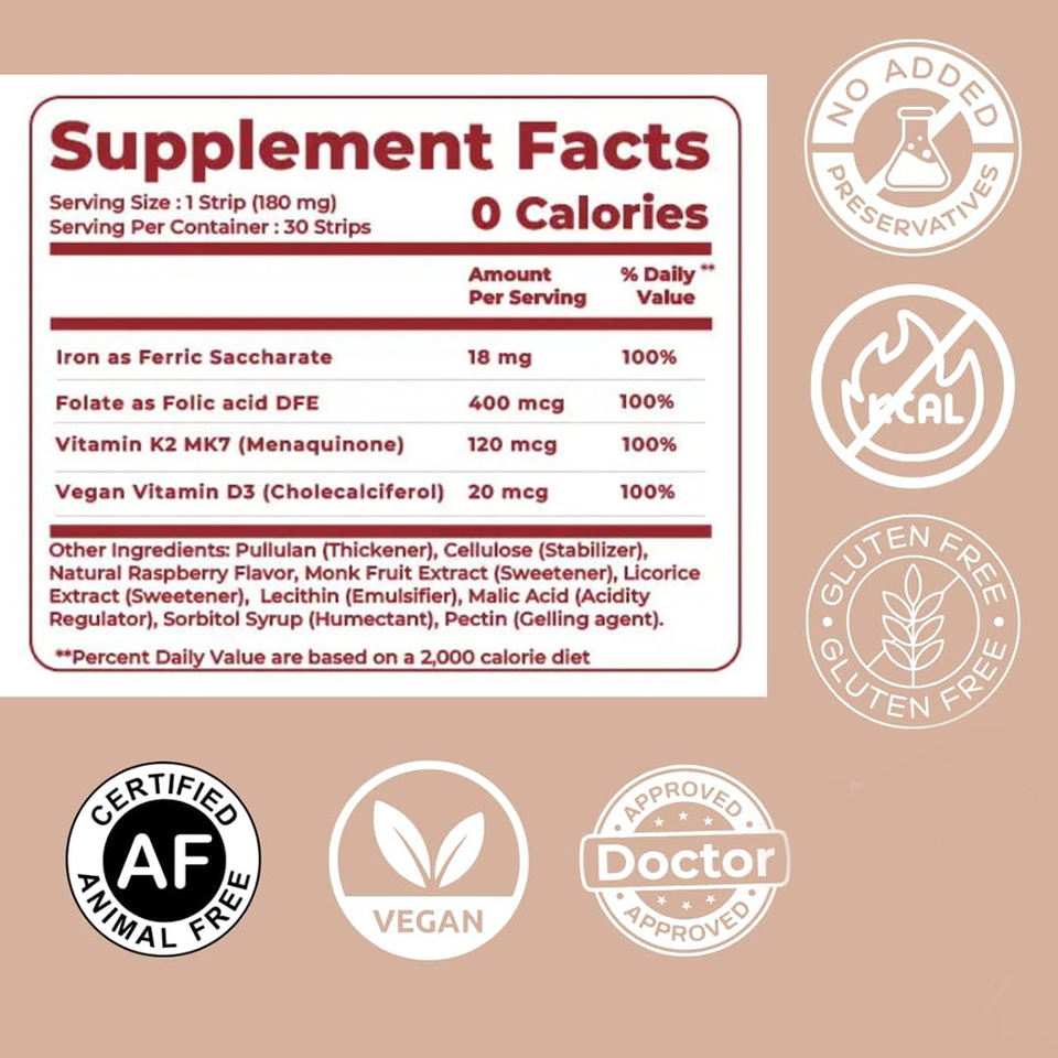 Suplemento de hierro de alta eficacia en tiras orales
