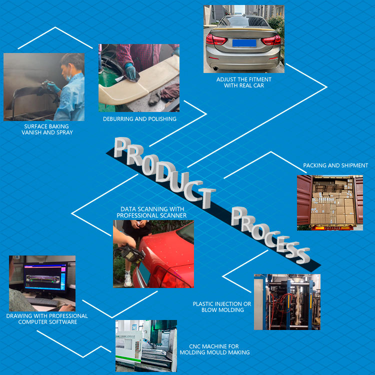 Use cartón de embalaje individual o 10-30 piezas de productos en un cartón grande a su elección, bolsa de plástico PP alerón trasero de embalaje. Equipado con cinta 3M
