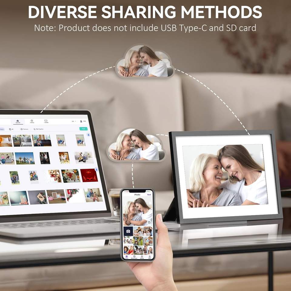 Marco de Fotos Digital Android WiFi de Alta Resolución de 10 Pulgadas con Pantalla Táctil, Reloj, Calendario, Compartir a través de Aplicación, Decoración