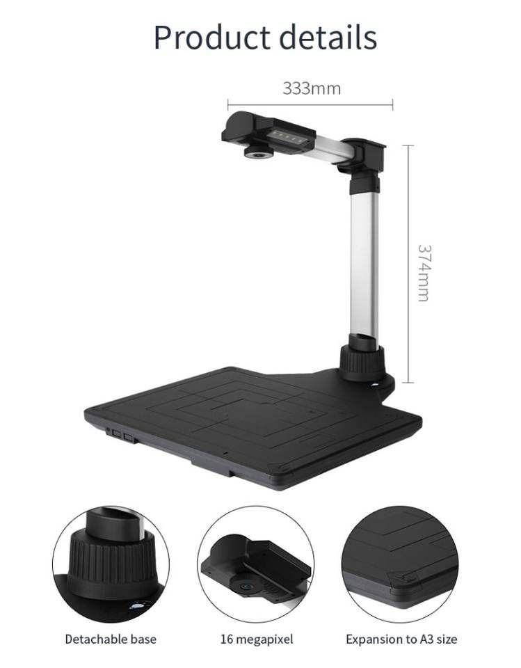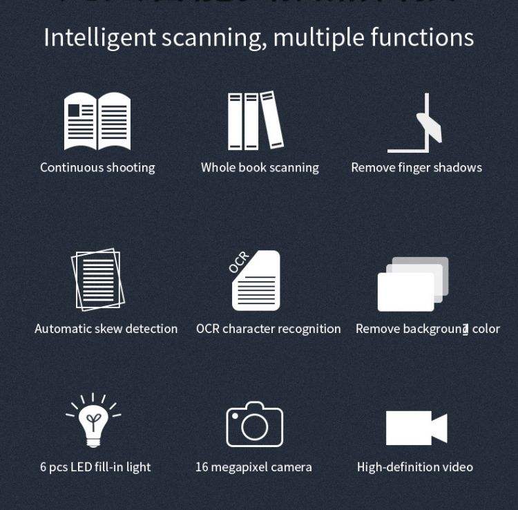 Escáner de papel portátil A3/A4/B5 de alta resolución, 16MP, interfaz USB, escáner de documentos bancarios de gran formato, 1 segundo